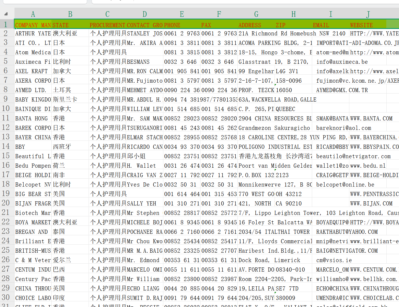سوف تحصل على اسم الشركة، العنوان، رقم التواصل، والايميل. بعض العناوين والكلمات باللغة الصينية، يمكنك استعمال أي برنامج للترجمة بنفسك.